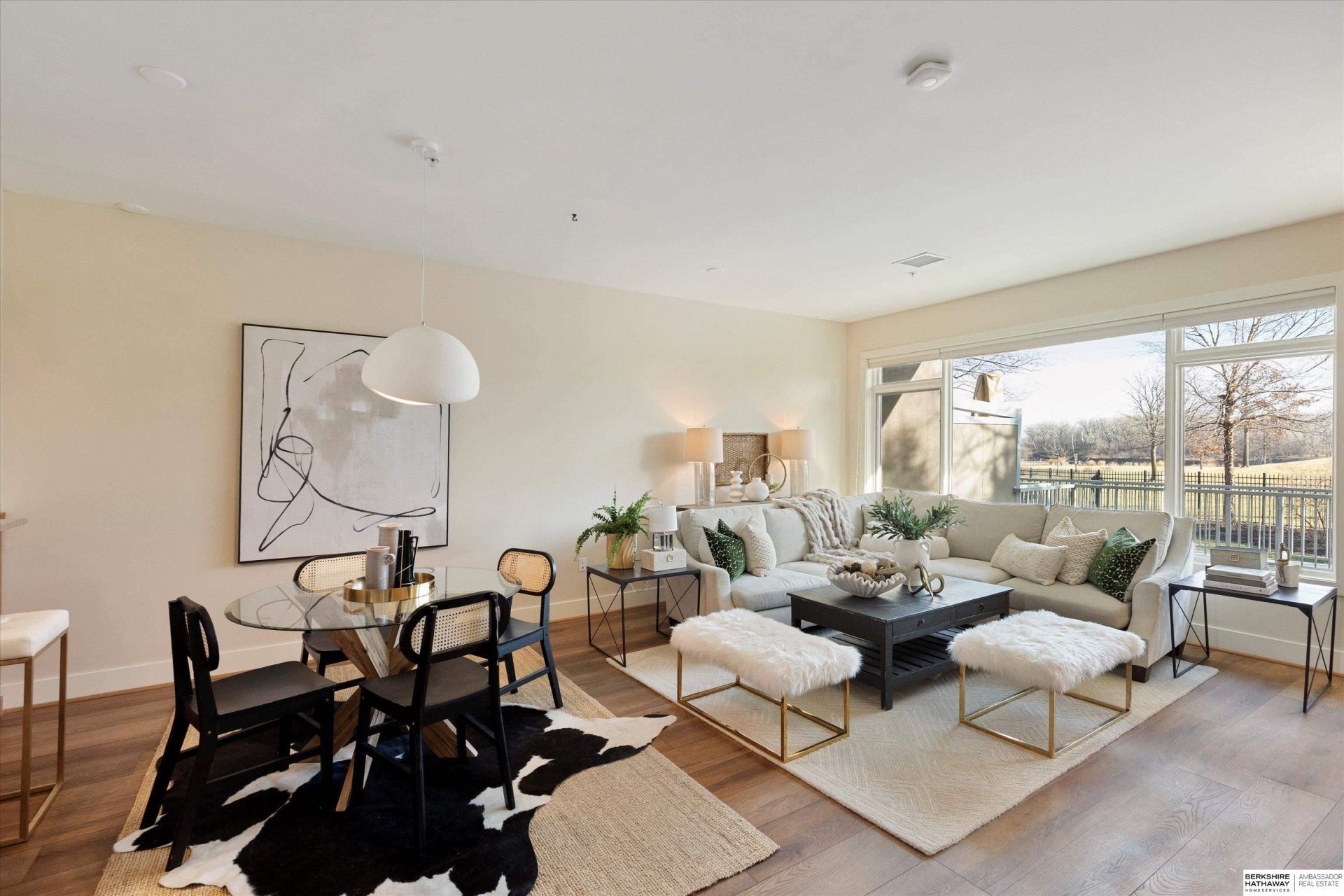 Experience elevated riverfront living. Sweeping views of the Missouri River and downtown skyline. Designed for both comfort and entertaining, the living room opens to a large patio, creating a seamless indoor-outdoor connection. Enjoy designer lighting, new carpet, and refined finishes throughout. A chef's kitchen with a double oven is ideal for everyday living and hosting. The primary suite is a private retreat featuring a fireplace, private deck, and his-and-hers walk-in closets. Outdoor living sets this home apart with three distinct spaces: a patio off the living room, primary bedroom deck, and an impressive rooftop terrace offering 360-degree river and skyline views. Enjoy the feel of a private retreat just steps from downtown. A heated, attached two-car garage and abundant storage add everyday convenience. Pre-inspected for peace of mind. HOA includes lawn care, snow removal, water, gas, two fitness centers, concierge services, and a community room for a lock-and-leave lifestyle.